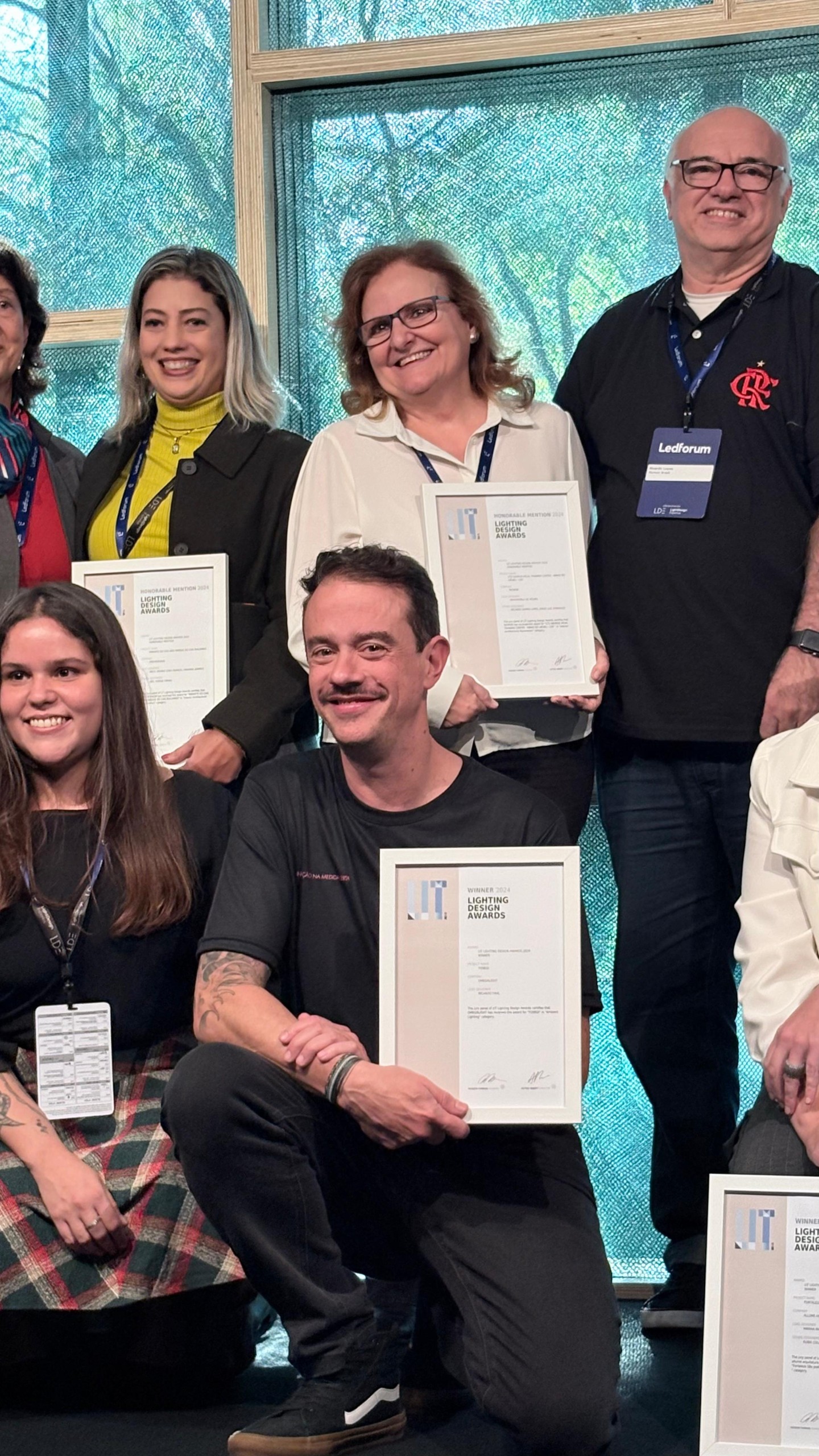 E tivemos ainda mais motivos para celebrar: durante o evento, recebemos o prêmio LIT Design Awards 2024 (Vencedor na categoria Ambient Lighting) com a nossa luminária Yosegi, um reconhecimento internacional que reforça nosso compromisso com design, inovação e propósito na iluminação.