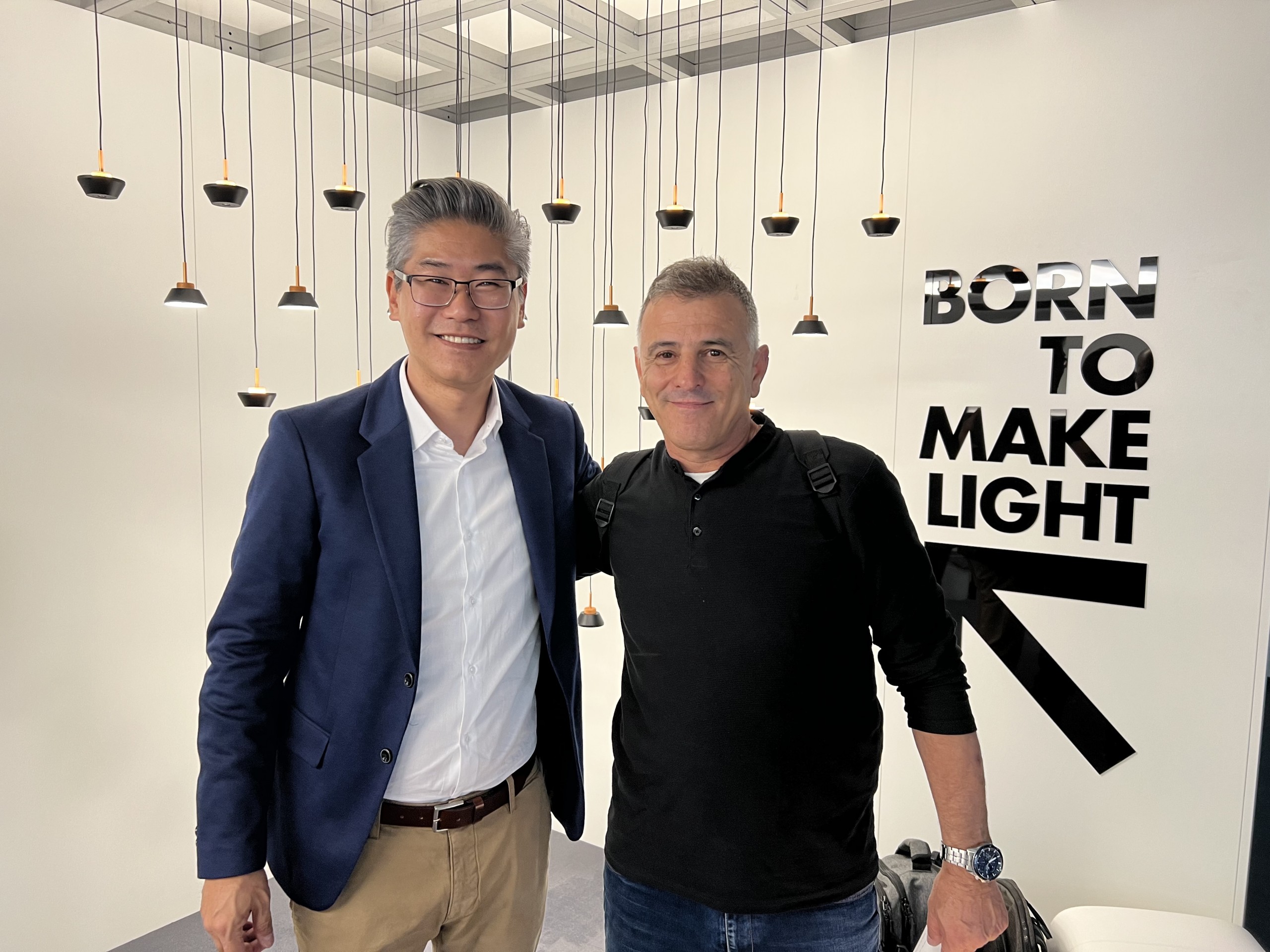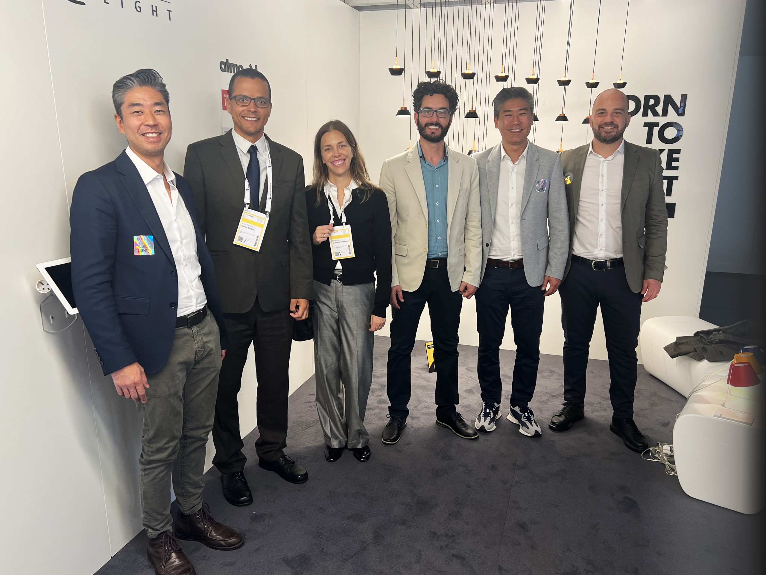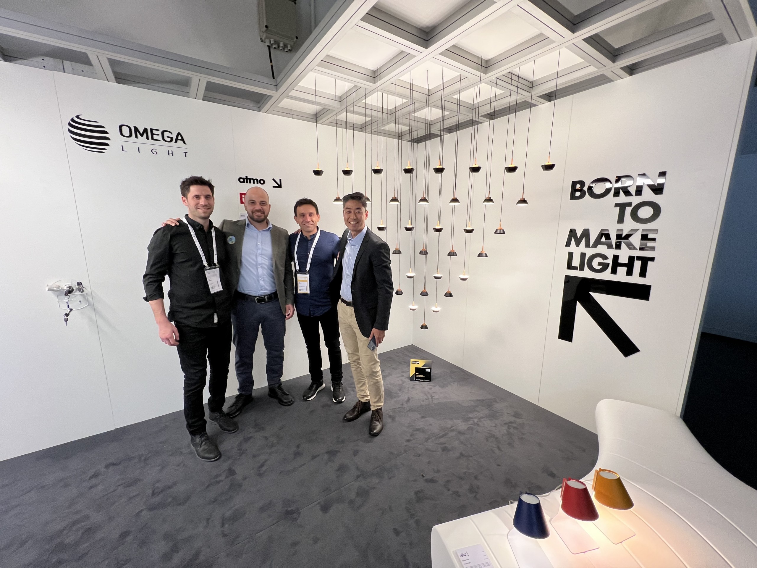 Este foi mais um grande e importante passo que, em parceria com a Abilux e Programa Lux Brasil, conseguimos dar rumo a internacionalização dos nossos produtos brasileiros para iluminação. Para apresentar nossa marca ao mercado europeu nossos diretores Fabio Nagata e Akira Nagata marcaram presença junto ao gerente de Comex Ricardo Coelho e gerente de produtos Ricardo Fahl. Focados em disseminar o poder da cultura e do design brasileiro levamos luminárias que representam bem tais características: estavam expostas no stand a nossa peg, atmo, ubá, ojigi e os lançamentos Drop e Pux.