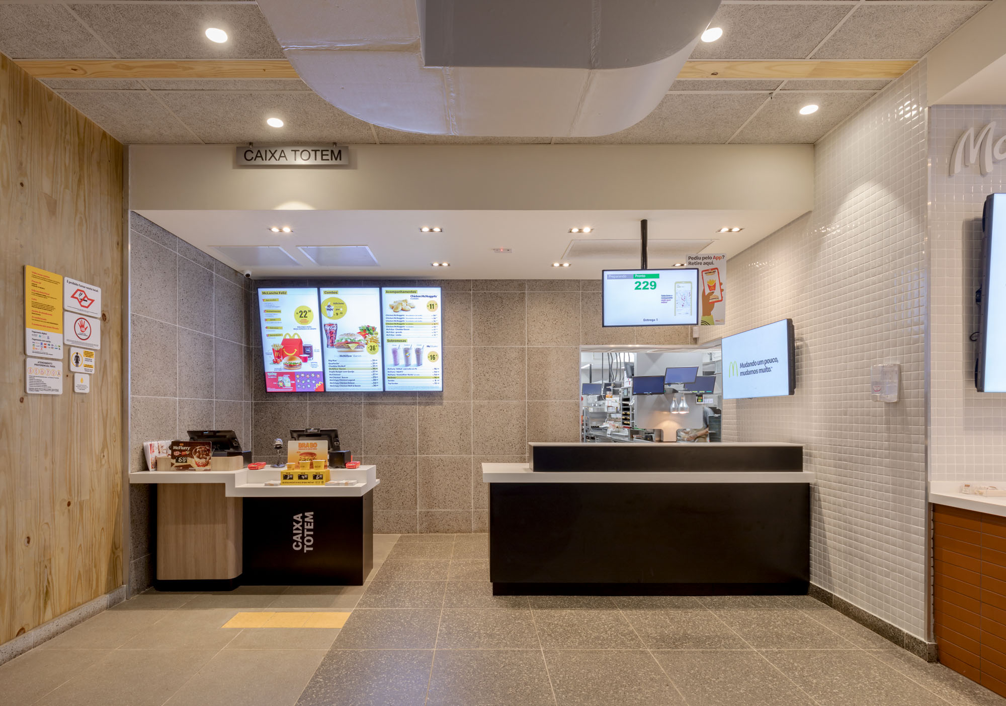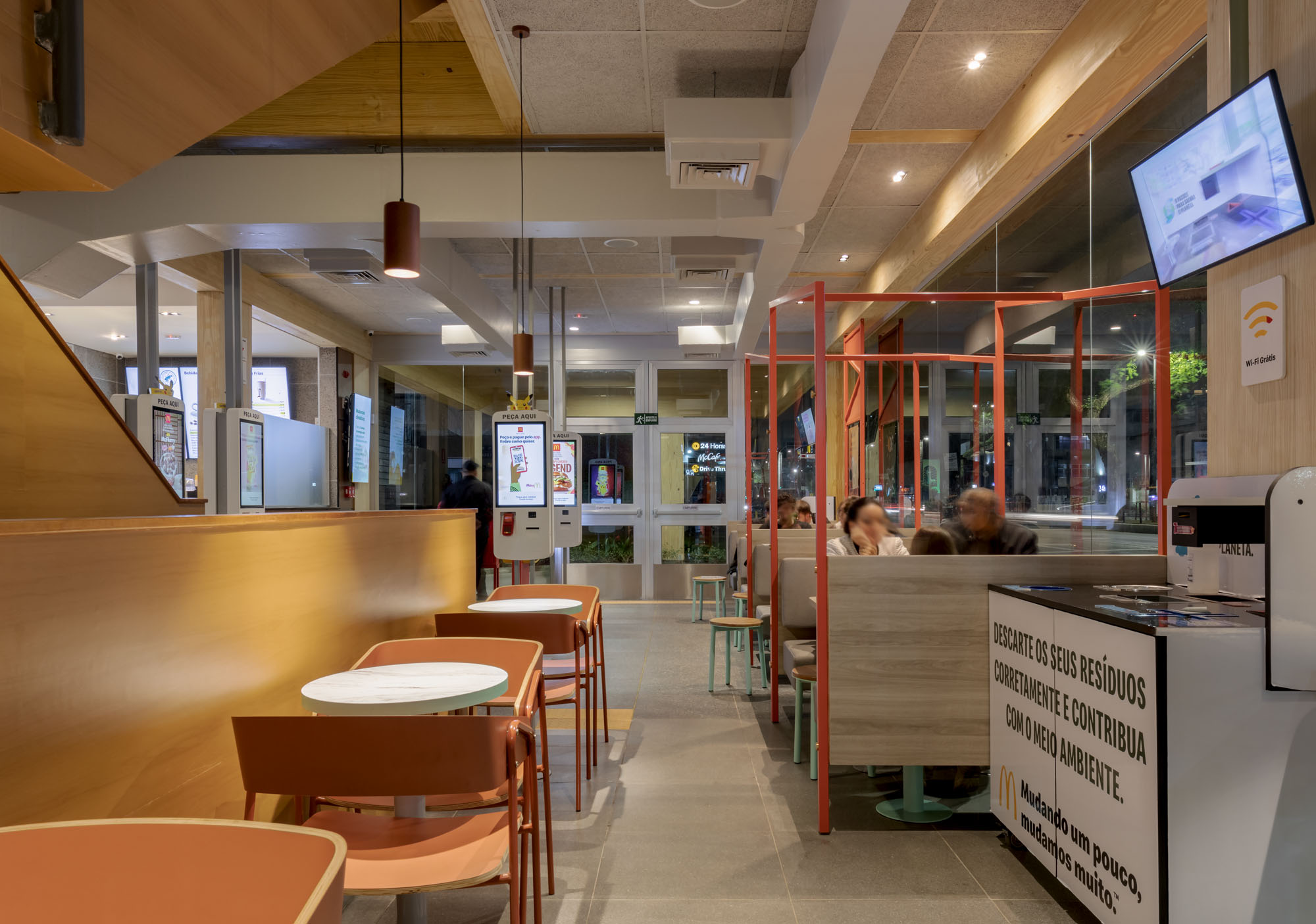 McDonald’s: Sabemos que o McDonald’s é um lugar onde as pessoas buscam conforto e praticidade, e a iluminação foi cuidadosamente projetada para tornar o ambiente ainda mais acolhedor, sem perder a identidade da marca. As luminárias desempenham um papel fundamental, com designs que reforçam o conceito da marca, incluindo peças que fazem alusão à batata frita e aos lanches, criando uma atmosfera divertida e personalizada.