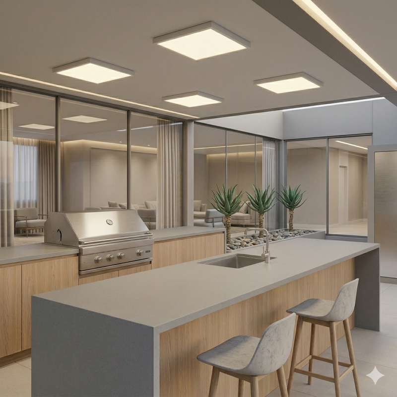 Luminária de sobrepor com iluminação difusa, projetada para transformar ambientes corporativos, residenciais ou comerciais. Proporciona luz homogênea que garante conforto visual e bem-estar, combinando estética refinada com alta performance. Sua instalação é prática e eficiente, ideal para laje ou forro com pouco espaço, sem comprometer o design do ambiente.