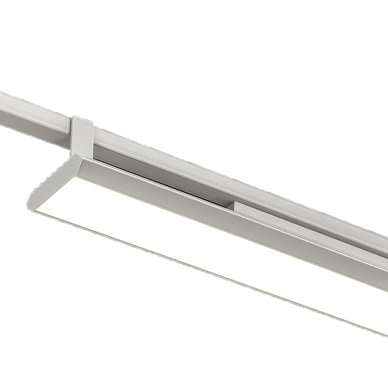 Luminária LED para iluminação geral. Instalação diretamente em perfilado através de ganchos de fixação.